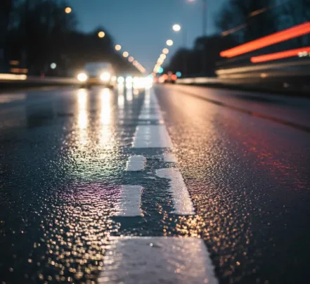 夜の雨が怖い最大の理由は、光の反射が一気に増えることです。